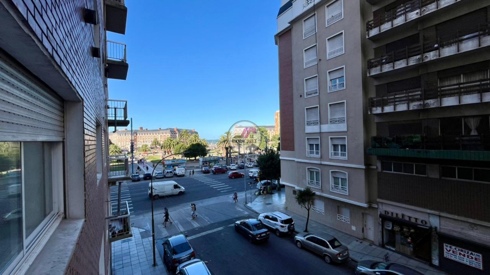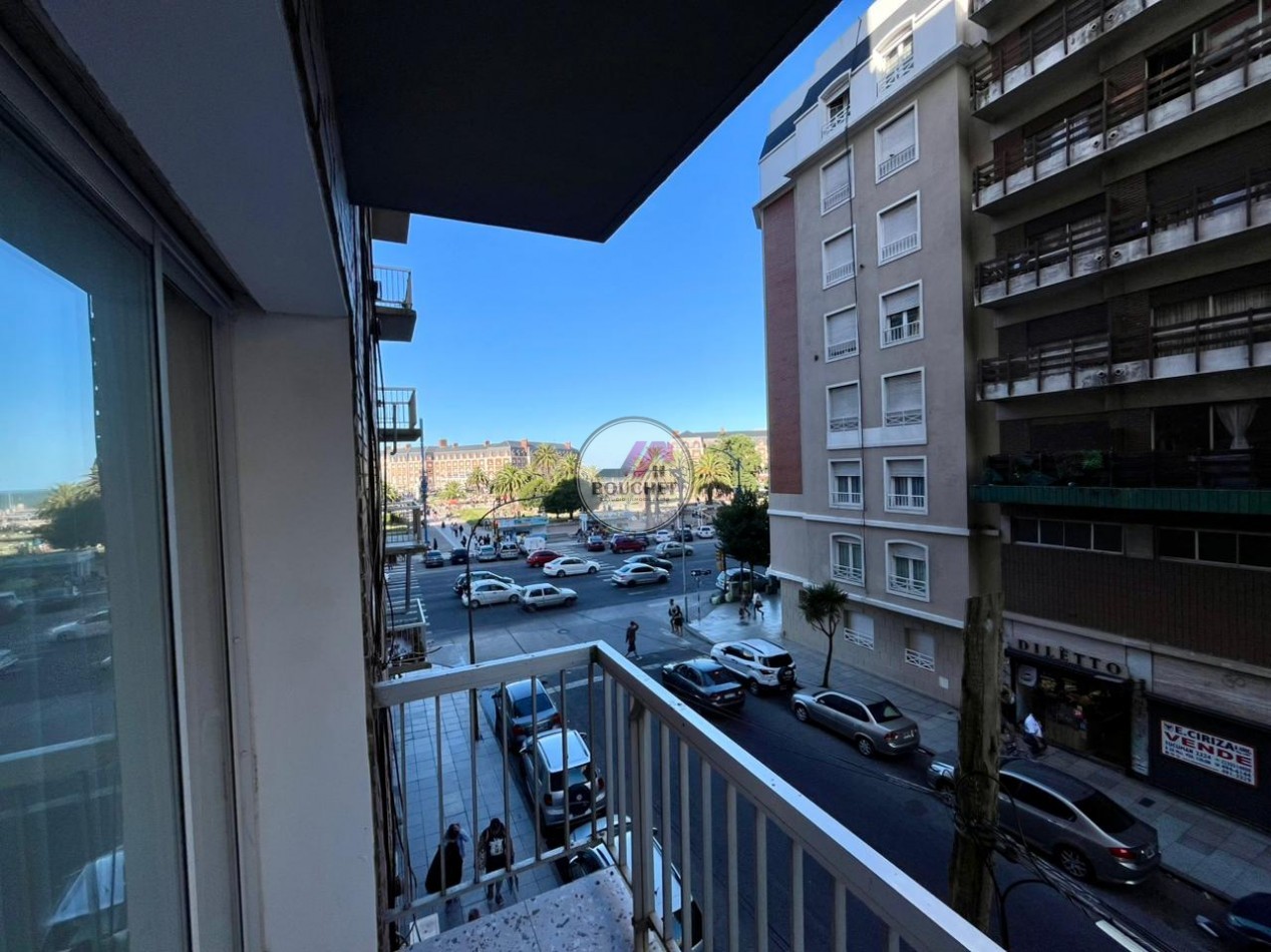 Cuenta con un amplio living comedor, muy luminoso, con balcón saliente a la calle y vista lateral a la plaza y al mar.