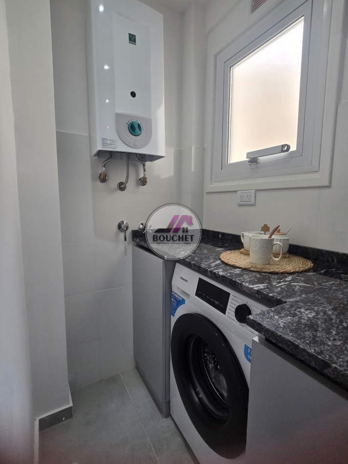 El balcón con parrilla es el protagonista indiscutido, ofreciendo un rincón perfecto para disfrutar de momentos al aire libre. La propiedad cuenta con baño completo con mampara y valiosas instalaciones como calefactor a gas, lavarropas, y obra de gas recientemente realizada para total tranquilidad. Todo el equipamiento es a estrenar, con detalles LED, y conectores USB.