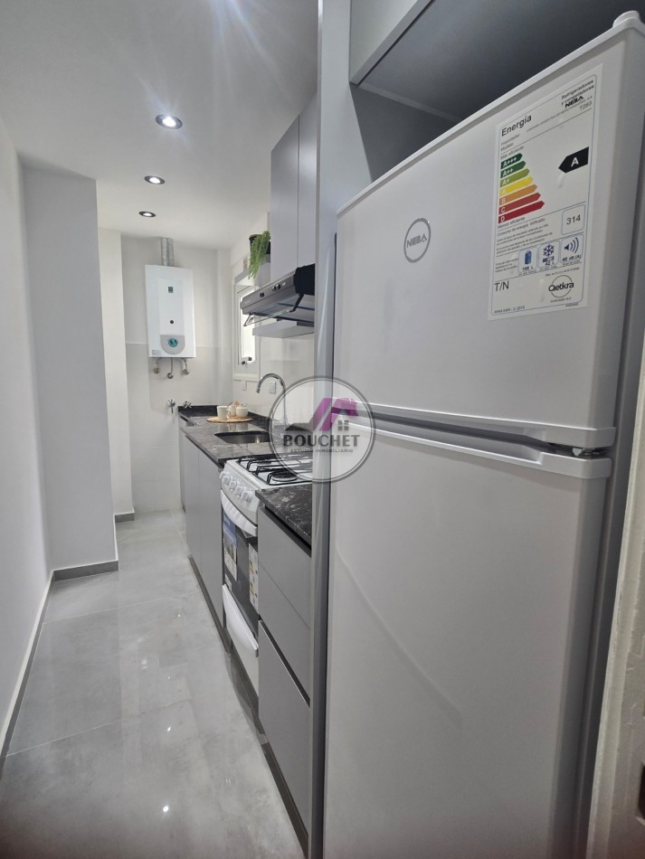 Este departamento reciclado y amoblado de 34 m² totales aproximadamente (29 m² cubiertos + 5 m² descubiertos) combina el encanto de una construcción solida con todas las comodidades modernas. Al ingresar, se aprecia inmediatamente su luminosidad, potenciada por sus aberturas DVH que garantizan eficiencia energética y confort acústico. El ambiente principal integra de manera inteligente el living, dormitorio y cocina amueblada, creando un espacio acogedor y práctico para la vida diaria.