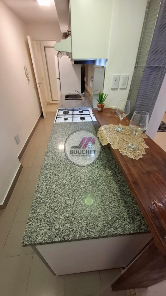 Este departamento de ambiente y medio, amoblado de aproximadamente 32m² totales, en Planta Baja, perfectamente distribuidos para maximizar el espacio.